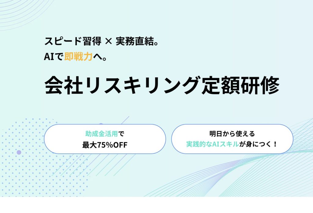 ゼロから実務まで。AI/DXスキルを最短でリスキル。会社リスキリング定額研修